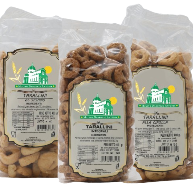 Tra i vari prodotti, ottenuti attraverso una coltivazione biologica ed esclusivamente a km 0, figurano: pasta, farina, olive e taralli.