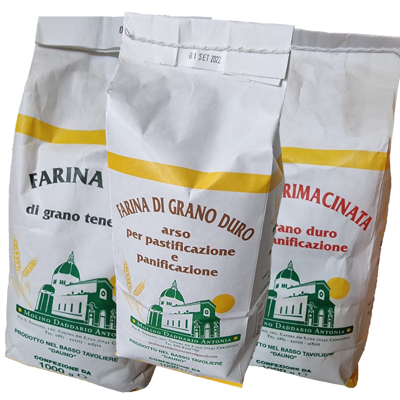 Il Molino “Daddario Antonia” nasce a Cerignola (FG), in Puglia, nella seconda metà del ‘900. Si tratta di un’attività a conduzione famigliare da 3 Generazioni e vanta la produzione di un antichissimo ingrediente, tipico della cultura gastronomica pugliese: la farina di grano arso.