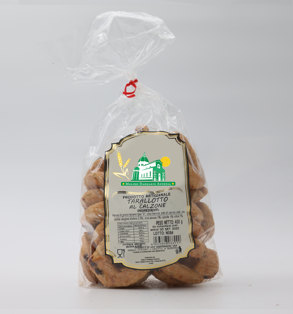 Assapora la tradizione pugliese con i nostri Tarallini Pugliesi al Calzone - Molino Daddario Antonia disponibili in diversi gusti irresistibili.