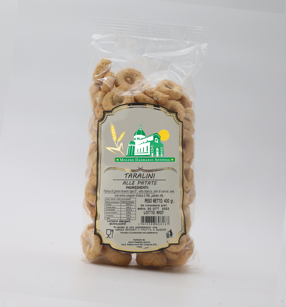 Assapora la tradizione pugliese con i nostri Tarallini Pugliesi alle Patate - Molino Daddario Antonia disponibili in diversi gusti irresistibili.