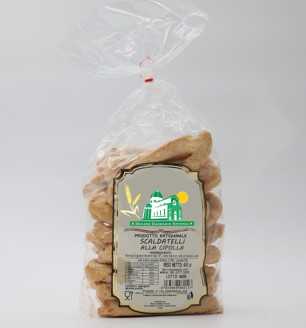 Assapora la tradizione pugliese con i nostri Scaldatelli Pugliesi alla Cipolla - Molino Daddario Antonia disponibili in diversi gusti irresistibili.